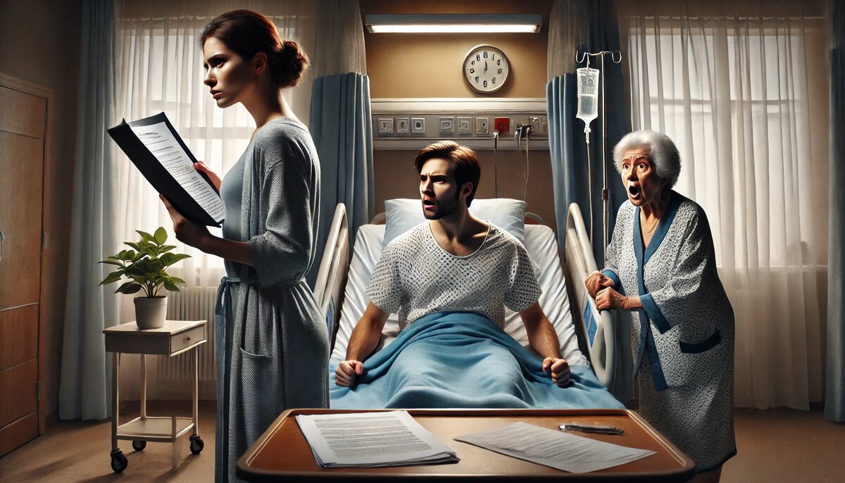 Она собралась с духом и вошла в палату без стука. Вадим и свекровь вздрогнули, как школьники, которых застали за шалостями. На лице мужа мгновенно появилась маска «страдальца», он жалобно застонал: