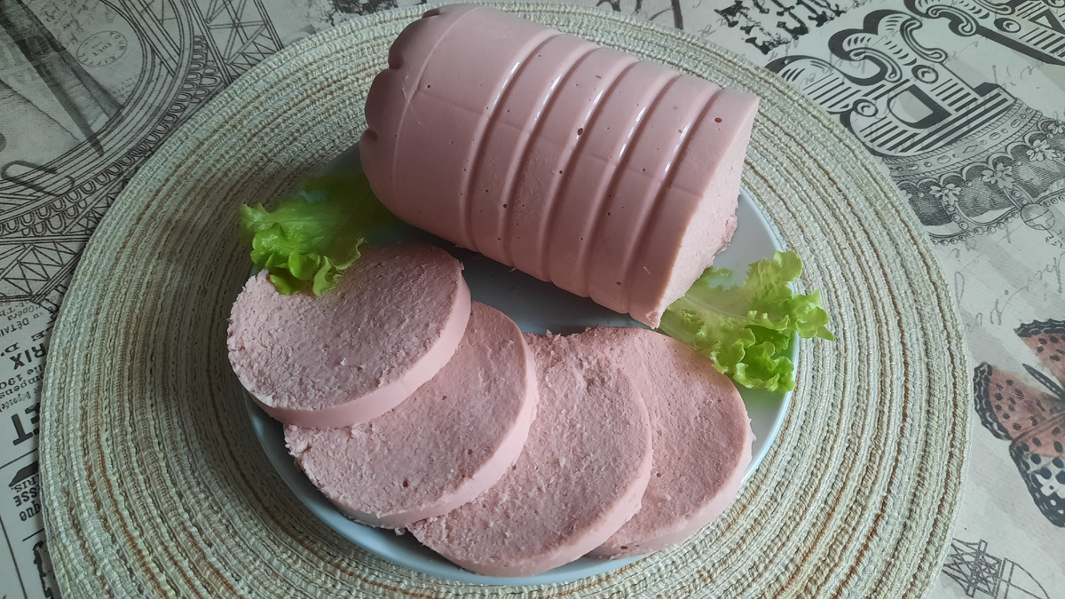 В магазине покупать не хочется и решила приготовить сама. Зато я знаю, какой у меня состав. Такую колбасу можно смело предложить и детям, будет только польза. Колбаса получается вкусной и полезной. Ингредиенты : 1. Куриные бедра- 500г. 2. Куриные голени, филе- 400г. 3. Репчатый лук- 2 шт. 4. Морковь- 2 шт. 5. Лавровый лист- 2-3 шт. 6. Сок отварной свеклы- 2-3 ст.л. 7. Желатин- 25г. 8. Соль, перец, специи- по вкусу. Мясо курицы, овощи залить водой и поставить варить примерно на 1 час. В конце варки посолить, поперчить.. добавить другие приправы на любителя. Отделить кости и основной продукт с бульоном готовы. Кожу я не использовала. Мясо порезать на небольшие кусочки и необходим 350 мл. бульона. Развести желатин в теплом бульоне и дать набухнуть 15 минут. Также, отварить свеклу, натереть на терке и отжать сок примерно 2-3 ложки достаточно. От того сколько вы добавите сока, от этого зависит интенсивность цвета колбасы. К мясу добавляем бульон и измельчаем блендером. Получается фа