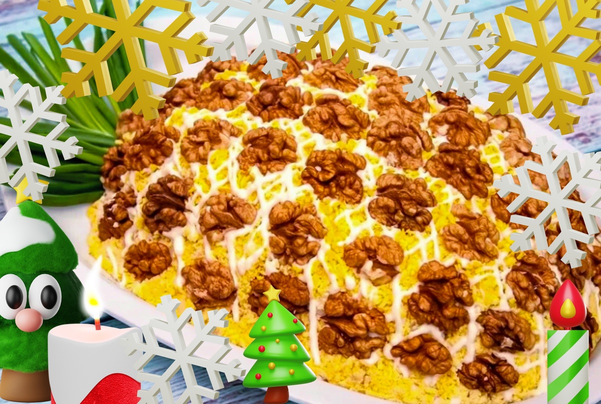 Салат с ананасом. Очень вкусный. Готовьте не пожалеете.