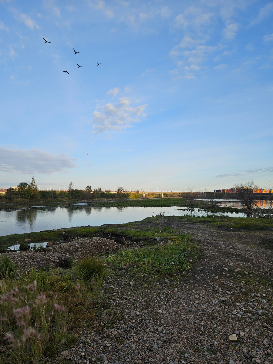 Напоминаю, что я снимаю для фиксации встречи. Эта статья - рассказ об опыте и впечатлениях. Мой последний день. Приехали мы где-то около полуночи или даже позже, а в 11.40 у меня уже был самолёт обратно в Петербург. Но это не помешало в последний раз сходить на наблюдения на остров Конный - вдруг бы я ещё кого-то интересного там нашла. Жили мы рядом, идти меньше 10 минут, так что я позавтракала, собрала вещи и отправилась вместе с рюкзаком за птицами, чтобы потом прямо оттуда вызвать такси. В принципе, могла бы и поспать - никого нового я не нашла, но зато я точно знаю, что там никого и не было :) Я пришла в 6-7 утра, и людей в это время не было. Вечером здесь гораздо многолюднее. В этой части острова в основном были водоплавающие виды. Шилохвости, кряквы, серые утки, свисунки и др. Меня больше интересовали мелкие воробьинообразные птицы. Вдруг я бы нашла ещё какую-нибудь овсянку или интересного конька. Здесь высокие шансы найти дубровника, но середина сентября - это уже слишком поздно