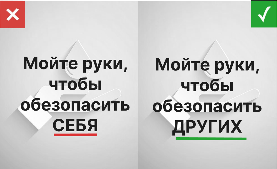 Сотрудники больницы с большей вероятностью умывали руки, когда в сообщении говорилось о пользе для пациентов (а не для них самих).