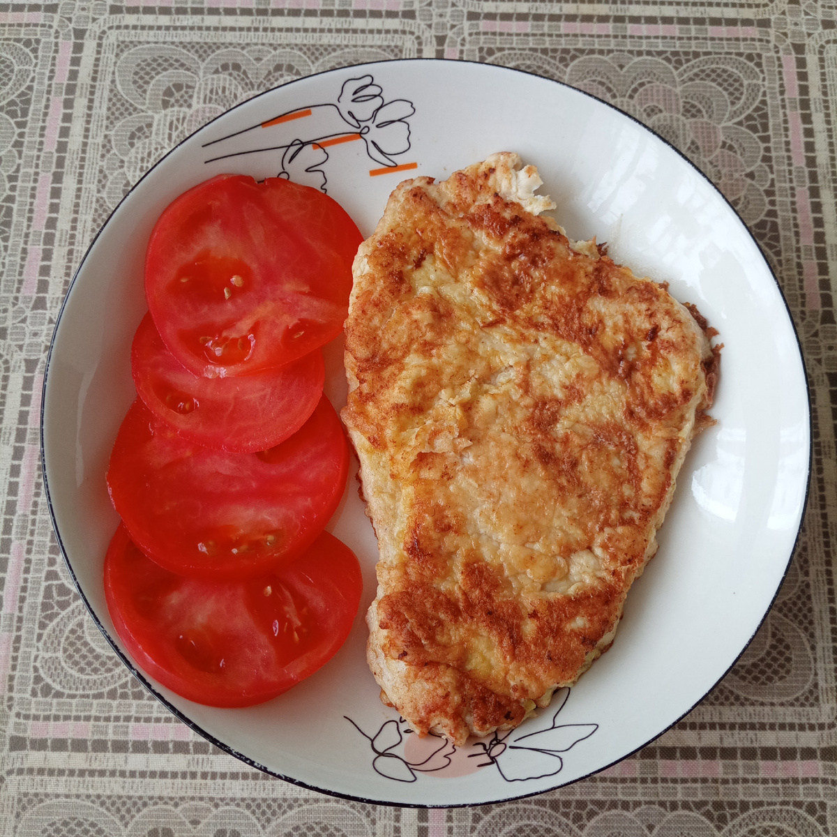 На завтрак я приготовила индейку в льезоне. В морозилке ещё лежат несколько пакетов с замороженной индейкой, которую я покупала с 40% персональной скидкой. В основном остались стейки, а они суховатые. Поэтому я ещё с вечера отбила их и просто чуть посолила. Утром обваляла в муке, в яйце и так по два раза. Последнее погружение было в яйцо. Обжарила по несколько минут с каждой стороны и нежнейшая индейка готова. Практически в кляре.