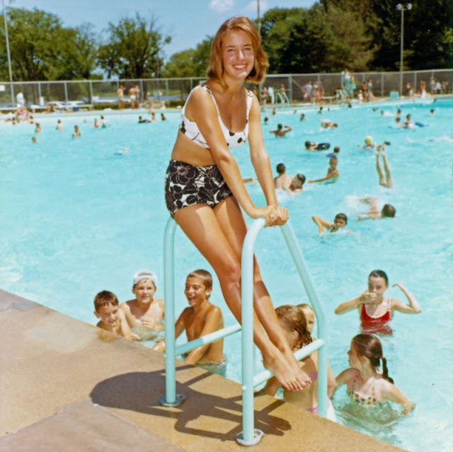 В 1960-х годах бассейны были не просто местом для купания, но и яркими социальными центрами, которые отражали меняющиеся культурные нормы того времени. Они стали пространством для общения, отдыха и развлечений, особенно в пригородах и на курортах. Люди приходили к бассейнам, чтобы насладиться солнцем, пообщаться с друзьями и близкими или просто отдохнуть после напряжённого дня. Мода у бассейна в те годы была яркой и разнообразной. Женщины надевали слитные и раздельные купальники с яркими узорами и насыщенными цветами. Они позволяли чувствовать себя уверенно и привлекательно, а также подчёркивали красоту женской фигуры. Мужчины носили плавки, некоторые из которых имели ретро-оттенок. Атмосфера у бассейна была непринуждённой и расслабленной. Люди отдыхали на солнце, играли в волейбол или другие игры, наслаждались прыжками в воду. Бассейны стали местом, где можно было забыть о повседневных заботах и просто наслаждаться жизнью. Для многих бассейн стал спасением от напряжённого темпа повсед