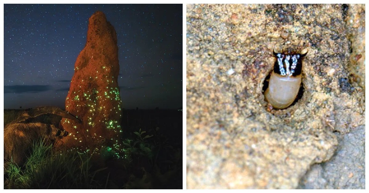 Это место можно было бы назвать мистическим – так завораживающе оно выглядит. Но в действительности у сияющих в тёмное время суток курганов есть практическое объяснение. Представители семейства жуков-щелкунов Pyrearinus termitilluminans процветают по всему миру, строя разросшиеся гнезда и периодически нанося ущерб местным запасам пиломатериалов. В Бразилии они строят высокие башни из цементоподобной земли. Этот южноамериканский вид жуков из семейства Elateridae интересен и уникален в своём роде. Как имаго, так и его личинки обладают способностью к биолюминесценции. Интересен образ жизни хищных личинок. Живя в заброшенных термитниках большими группами, они задействуют свою физиологическую способность к свечению для привлечения пищи. Во время тёплых и влажных ночей личинки массово светятся, освещая весь термитник. Наблюдать этот феномен можно преимущественно в тёплое время года. У взрослых особей имеется пара жёлтых люминесцентных овальных пузырьков на груди и люминесцентный орган на брю