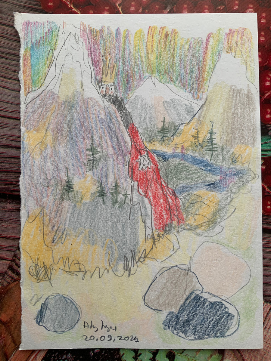 Серия рисунков про горного короля. Утро горного короля. Свобода горного короля. Горный король и вулканы. Горный король и первый снег. С этим королем вместе шли эльфы: Снежный пирс. Иней. *** Пока что это все истории про Горного Короля, которые мне удалось нарисовать. Горного Короля я решила нарисовать, так как пришла зима и я вспомнила мультфильм «Гномы и горный король». Вот гномы: А вот и сам горный король: Довольно мрачный :)) А мне захотелось нарисовать его чуть более добрым. И я надеюсь придумать больше историй о нем. *** Сам мультфильм является фантазией на тему музыки Эдварда Грига (пьесы: «Утро», «Шествие гномов» и «В пещере горного короля»), которую он написал к драме Генрика Ибсена «Пер Гюнт». Я точно не знаю, как относится Дзен к ссылкам на видео, поэтому пощу только картинки. Сам мультфильм можно найти на разных платформах и видеохостинга. К этой музыке сняты и другие анимационные фильмы, но наш мне нравится больше всего.