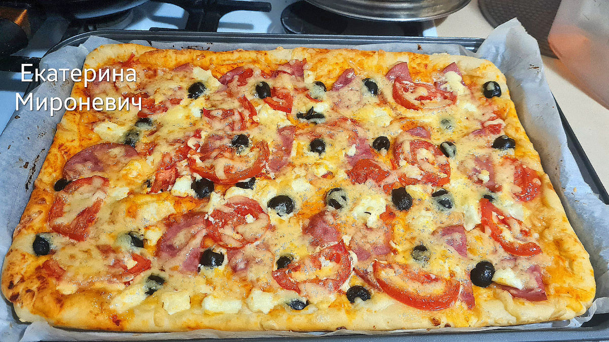 - Вытаскиваю первую пиццу, ставлю в духовку вторую.