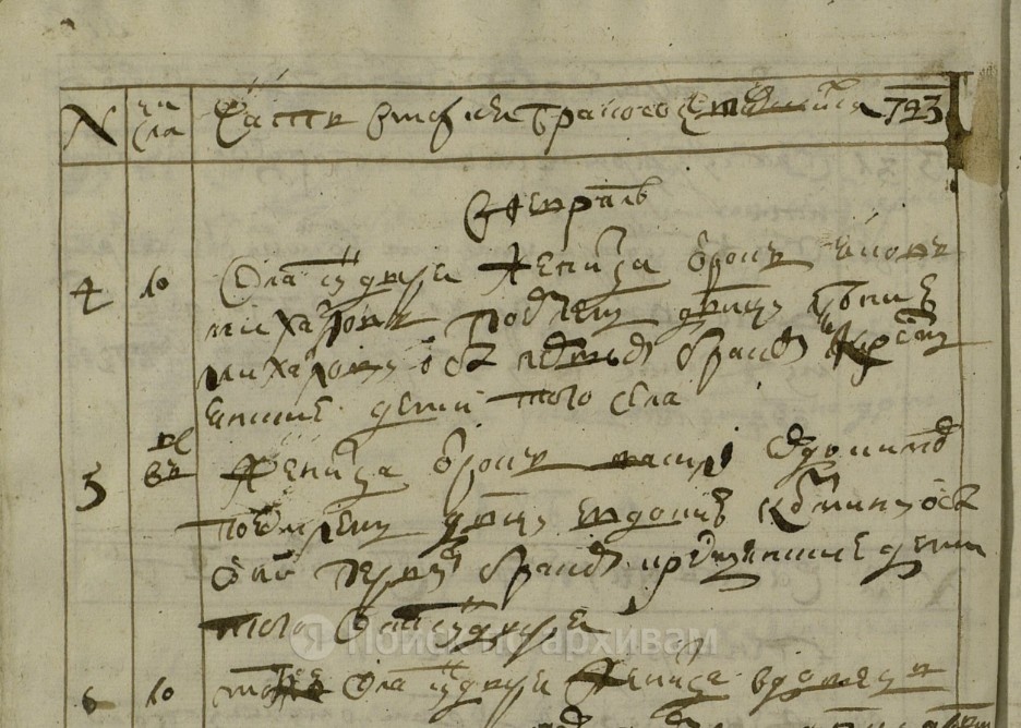 Часть вторая. О бракосочетавшихся 1723 году генваря с 1 числа. Генваря. 1. 20 числа. Женитца отрок деревни Моляково помещика Ивана Иванова крестьянин Савелий Кондратьев поезжему девицу города Кокшайска ясашного крестьянина Евдокию Семёнову дочь оба они первым браком. 2. 20 числа. Деревни Новинской женитца отрок Иван Сергеев поезжаему девицу села Сундыря Марью Андрееву оба они первым браком крестьянские дети. Февраля 3. 6 числа. Чебоксарского Троитцкого монастыря деревни Гремячевы женитца отрок крестьянин Емельян Петров поезжему девицу села Сундыря деревни Новинской крестьянскую дочь Наталью Михайлову оба они первым браком. 4. 10 числа. Села Сундыря женитца отрок Яков Михайлов поезжему девицу Устинию Михайлову оба они первым браком крестьянские дети того ж села. 5. 10 числа. женитца отрок Василий Евдокимов поезжему девицу Устинию Козмину оба они первым браком крестьянские дети того ж села Сундыря. 6. 10 числа. Села Сундыря женитца вдовец Гаврила Тимофеев поезжему девицу деревни Новинск