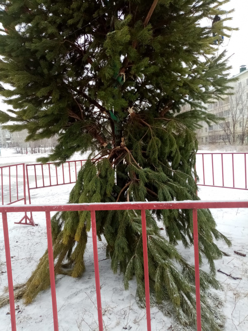 В Камышине в эти предновогодние дни жертвами жутковатой "моды" мелкого местного хулиганья пали городские елки. Как рассказала "Блокноту Камышина" руководитель муниципального бюджетного учреждения "Благоустройство" Тамара Батеева сегодня, 27 декабря, молодчики-налетчики растерзали, изломали украшенные городские елки у школы №19 (на снимке), в бухте (на нижнем снимке). На площади Радищева "выдрали" и утащили красавицу.