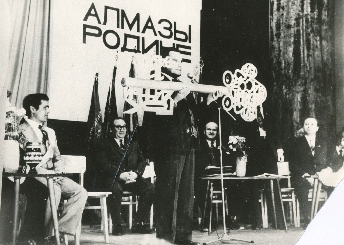 В 1977 году объединению «Якуталмаз», как одному из лучших предприятий цветной металлургии страны, в честь 60-летия Октябрьской социалистической революции было присвоено почетное имя Владимира Ильича Ленина. К этому юбилею в Мирном открылся долгожданный долгострой — Дворец культуры «Алмаз». В том же году были установлены и новые рекорды в карьере «Мир». Так, бригада А. П. Малькова первой в объединении отгрузила более 2 млн т горной массы на экскаваторе ЭКГ-8И, а бригада Г. Д. Заворина на станке СБШ-250 пробурила 107 тыс. пгн. м скважин.