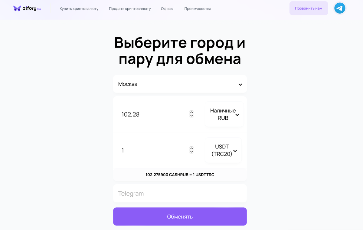 Если вы хотите обналичить USDT быстро и безопасно, важно выбрать наиболее оптимальный способ обмена. Современные криптообменники предоставляют множество вариантов для вывода средств, включая оффлайн и онлайн способы. Однако, важно выбрать надежный обменник, который минимизирует риски и даст гарантию наиболее выгодного курса. В этой статье мы рассмотрим популярные способы обмена USDT и рекомендации по выбору надежного обменника. Чтобы обналичить USDT TRC 20 или другую версию токена, можно воспользоваться как офлайн, так и онлайн обменниками. Каждый из этих вариантов имеет свои особенности: Криптообменник Aifory Pro предоставляет оба способа, чтобы пользователь мог выбрать наиболее удобный для себя. Для тех, кто предпочитает максимальную безопасность и наиболее выгодные курсы, оффлайн обмен через Aifory Pro — самое оптимальное решение. Вот пошаговая инструкция: Создайте заявку