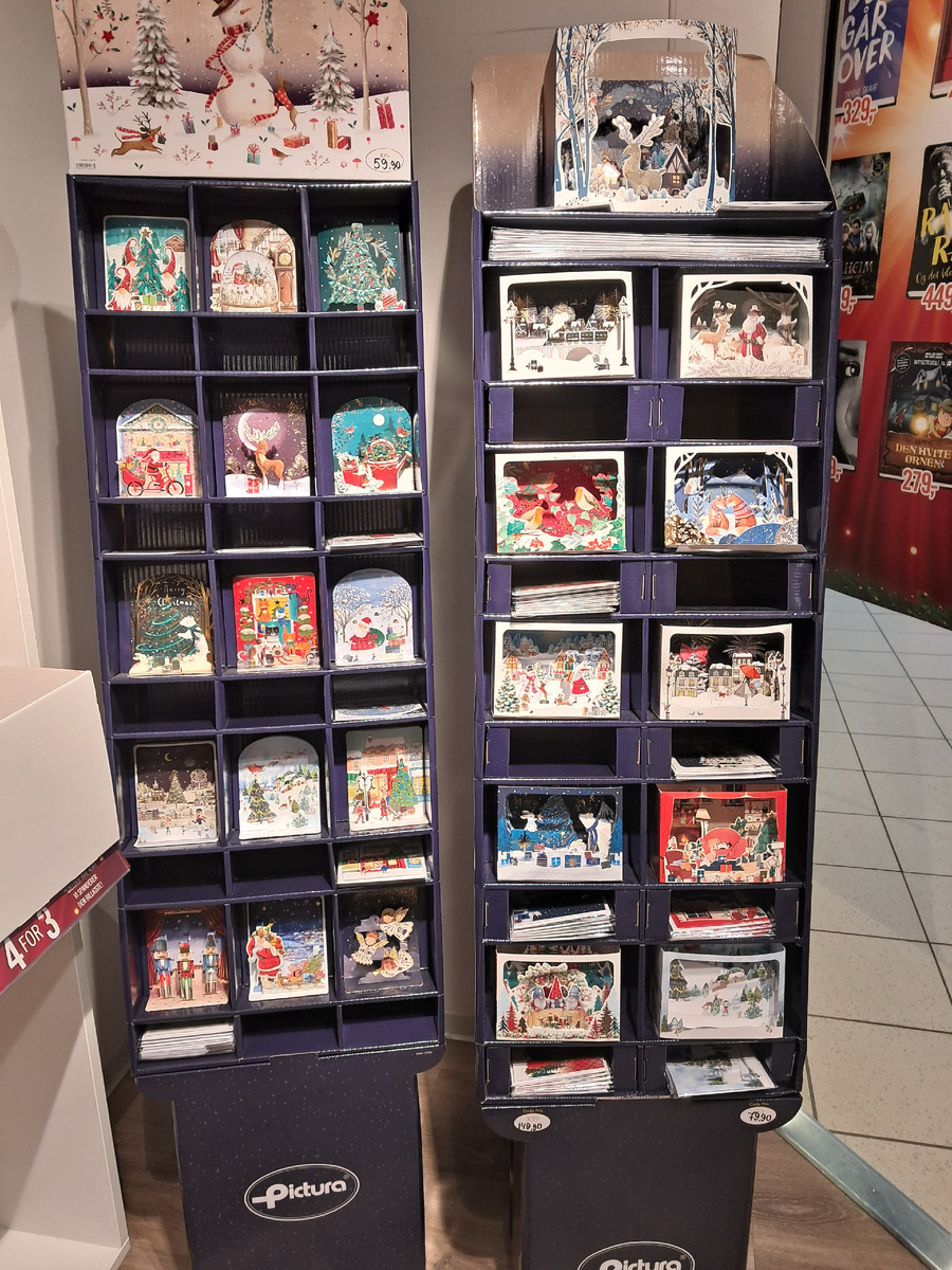 Подписывать новогодние и прочие поздравительные открытки было раньше, до времен СМС, доброй традицией. Возможно, не такой и замысловатой, но душевной. Времена меняются быстро. Ещё 20 лет назад мы писали друг другу письма на бумаге... Зашла в местный книжный и обратила внимание на открытки. Понравились. Очень душевно-ностальгически выглядят. Я как-то и подзабыла, что до сих пор существуют эти мило-разноцветные глянцевые картинки Они объемные. Разворачивать, и видишь сказочно-поздравительную миниатюру. Хочу с вами поделиться этими новогодними картинками. Мне они напомнили кукольный театр, который был у нас с братом в детстве. С картонными фигурками сказочных персонажей. Он, этот театр, раскрывался подобным образом. Весомее и зримее была раньше переписка. Теперь вышел из строя мобильный-и все лишь в памяти осталось. Поюбовалась я, полюбовалась, но открытку не стала покупать. Не захотелось возиться, выдумывать текст, подписывать. Проще такая небольшая этикетка для