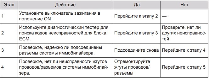Описание кода неисправности: блок ECM не сопряжен с иммобилайзером или наличие ошибки состояния EEPROM.