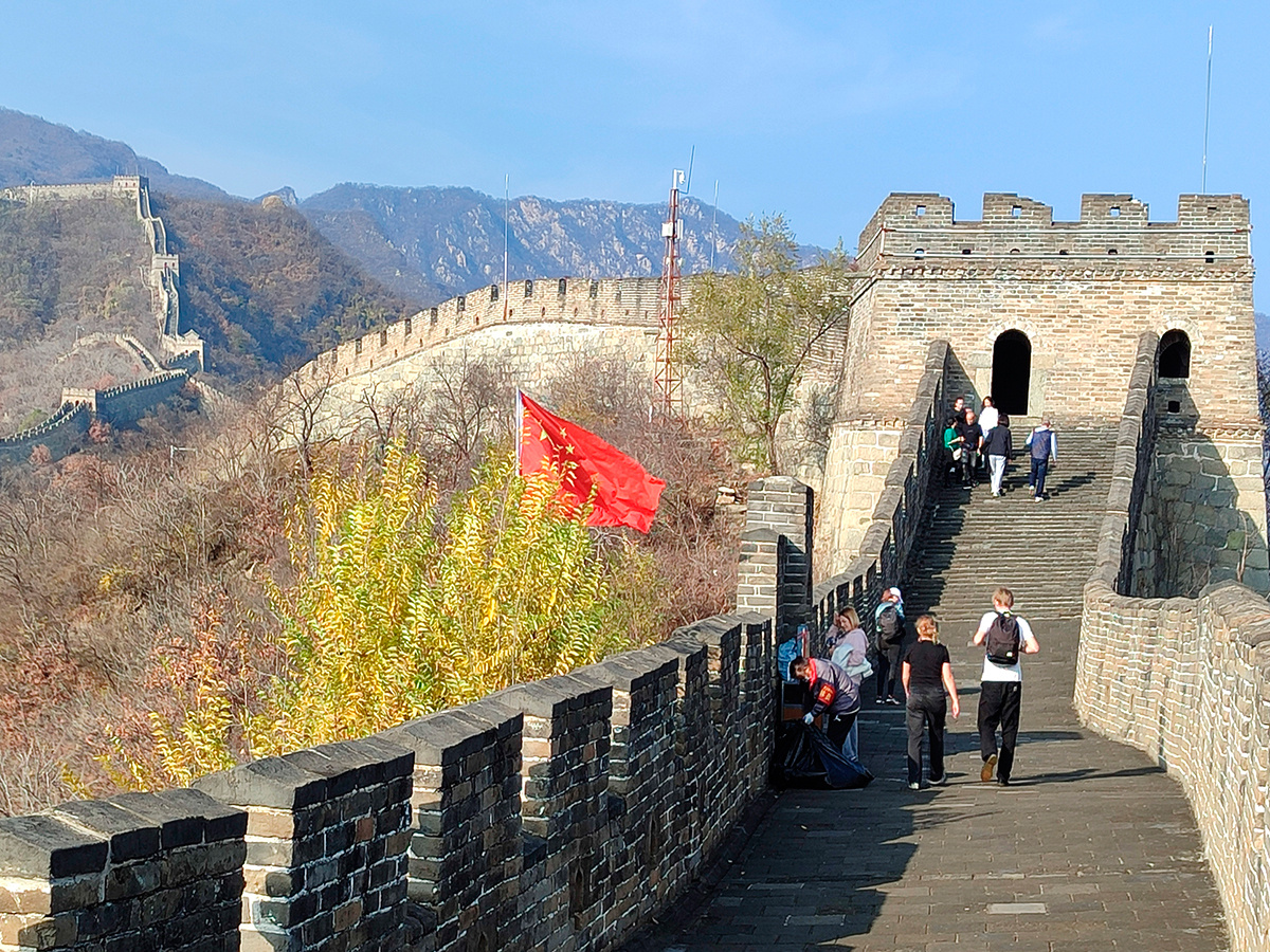 Чем Великая Китайская Стена хороша так это тем, что путь назад это словно бы новый маршрут. И ориентиры впереди уже другие, и спуск по лестнице отличается от подъема. Если никуда не спешить, то можно еще раз получить удовольствие от прогулки и увидеть другие ракурсы.
