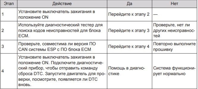 Описание кода неисправности: обрыв цепи датчика скорости левого переднего колеса или короткое замыкание на цепь питания. Описание кода неисправности: замыкание на "массу" датчика скорости левого переднего колеса. Описание: сбой сигнала датчика скорости левого переднего колеса. Описание кода неисправности: ошибка проверки сигнала датчика скорости системы полного привода. Условия появления кода неисправности: блок ЕСМ получает сообщение системы ESP и отправляет информацию о неисправности сигналов скорости колес.