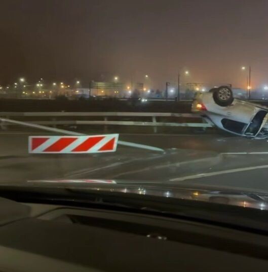 В ночь с пятницы на субботу водители Петербурга стали свидетелями аварии, которая произошла недалеко от Западного скоростного диаметра. Легковой автомобиль перевернулся на крышу. «На съезд с КАДа, перед заездом на ЗСД, на севере лежит перевёрнутый не каршеринг», — написали очевидцы и опубликовали видео в телеграм-канале «Мегаполис». На кадрах можно рассмотреть автомобиль, который упал на крышу. По всей видимости, на момент съемки водителя и пассажира внутри не было. Информация о пострадавших не поступала. Также «Петербургский дневник» сообщал, что мужчина сбежал из больницы после аварии и попал в новую. Подробнее читайте здесь.