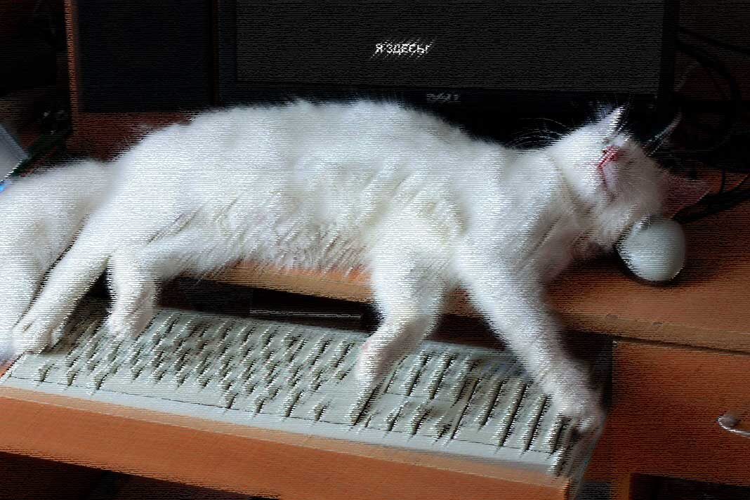 Подхожу обратно к рабочему столу и... Все на месте: кот с мышкой под головой, клавиатура, монитор, но что-то не так…