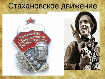 Автор: Анна Шевчук. Стахановское движение - это массовое движение последователей шахтера Алексея Стаханова, новаторов социалистического производства в СССР, рабочих, колхозников и инженерно-технических работников за повышение производительности труда на базе освоения новой техники. Являлось одним из видов ударничества – первой и наиболее массовой формы социалистического соревнования. Родоначальником стахановского движения стал Алексей Григорьевич Стаханов – забойщик шахты «Центральная Ирмино» города Кадиевка (ныне – Стаханов), добывший в ночь с 30 на 31 августа 1935 г. за 5 ч. 45 мин. 107 т. угля при норме выработки 7 т. Сенсационное достижение Стаханова было достигнуто благодаря замене прежней индивидуальной работы шахтеров бригадной организацией труда с разделением трудовых функций. Стаханов работал только отбойным молотком, а вслед за ним шли двое других шахтеров, расширявших забой и укреплявших стены. Другими словами, Стаханову обеспечивали место для работы, и все рабочее время он