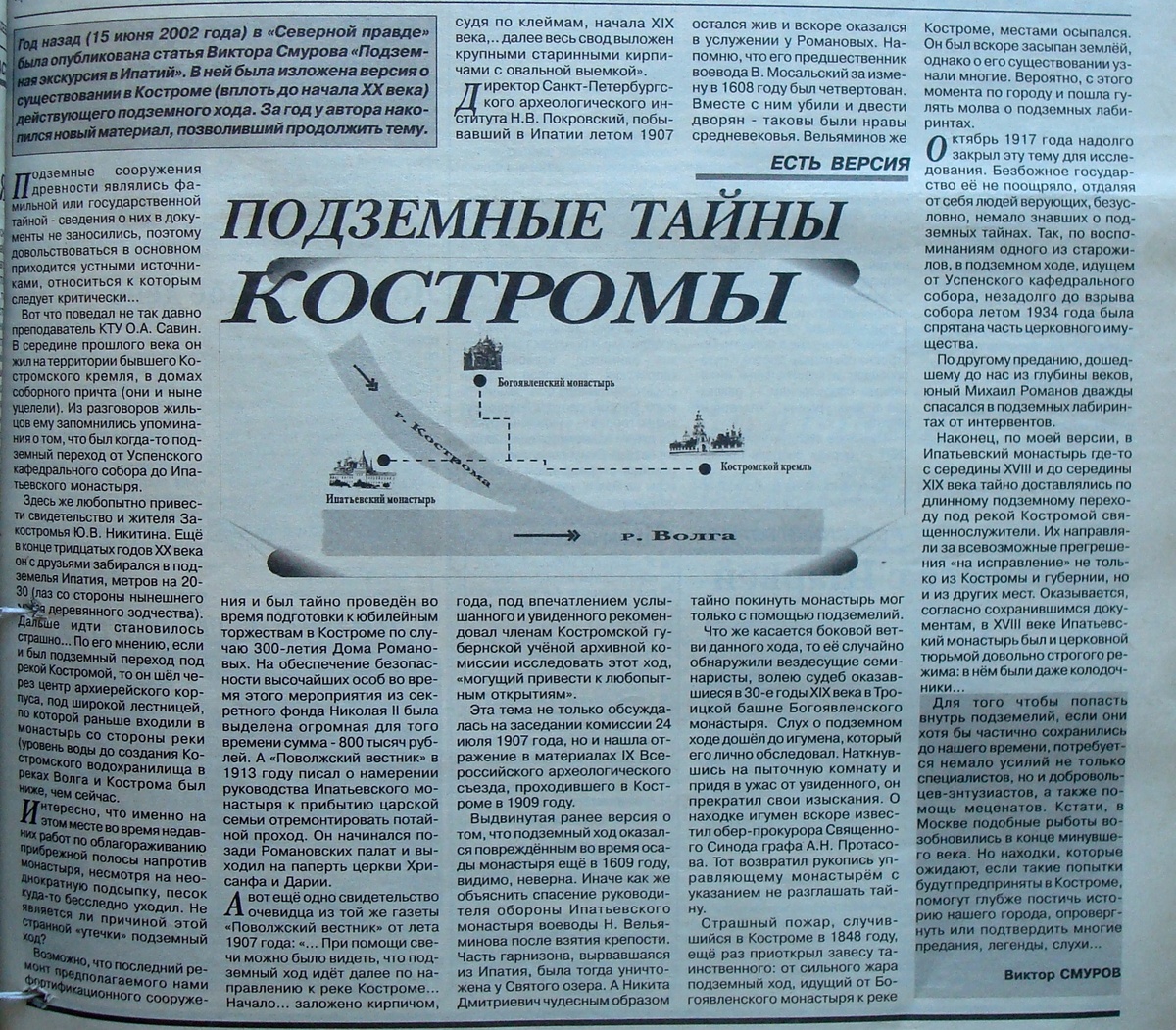 Вот уже много десятилетий в Костроме ходят слухи о подземном ходе, якобы вырытом от Костромского кремля (снесенного в тридцатые годы и восстанавливаемого в наши дни) до Ипатьевского монастыря — вотчины бояр Годуновых, где в 1613 году прятался юный Михаил Романов. Ход этот проходил под водами Волги и Костромки — небольшой реки, от названия которой, по всей видимости, именуется сам город. Одна из легенд касательно этого хода гласит, что вырыт он был еще во времена Ивана Грозного для личных нужд царя: а именно для сокрытия в подземных тайниках легендарной Либерии — библиотеки царя Ивана, которую он унаследовал от Софии Палеолог, византийской принцессы. Та, в свою очередь, привезла эту библиотеку из Рима на семидесяти обозах (так говорили в народе). Библиотека состояла из книг собственно византийских императоров — василевсов — и собрания Ватикана. Считается, что Папа Римский был против вывоза столь ценной коллекции из Вечного города. Говорят также, что нынешняя стоимость этой библиотеки бы