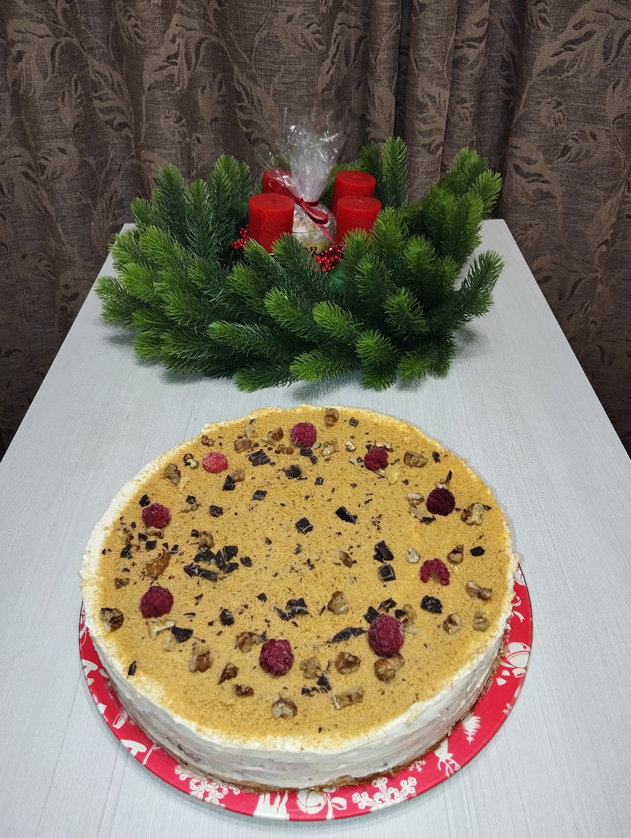Всем здравствуйте! Ну если уж я делаю торт на День рождения дочери, решила его заодно и снять. И поделюсь рецептом. Вдруг, кому-то именно он и нужен перед праздниками🎄 Рецепт придумала не я, брала где-то очень давно. Записан у меня в кулинарной книге, которую мне еще в детстве подарила дочерь. Туда я записываю рецепты, которые мне понравились. Раз этот медовик есть в моей книге, значит, нам он зашёл) Норму продуктов напишу для небольшого тортика примерно 16 см в диаметре. Нам я пеку двойную норму обычно. Потому что гостей любим😀 Итак. Для теста: мёд - 100 гр. сахар 120 гр. сливочное масло - 120 гр. яйца - 1 шт. сода - 0,5 чайной ложки Мука - 300 гр. Для крема: молоко - 250 мл. яйца - 1 шт. сахар 30 гр. сливочное масло - 20 гр. мука 10 гр. кукурузный крахмал - 10-12 гр. Сливки 33% - 150 гр. Сметана - 150 гр. Для клубничной прослойки: Клубничное пюре - 100 гр. (Можно протирать от косточек, можно пропустить этот этап, можно купить готовое и необязательно клубничное, можно вообще пропу