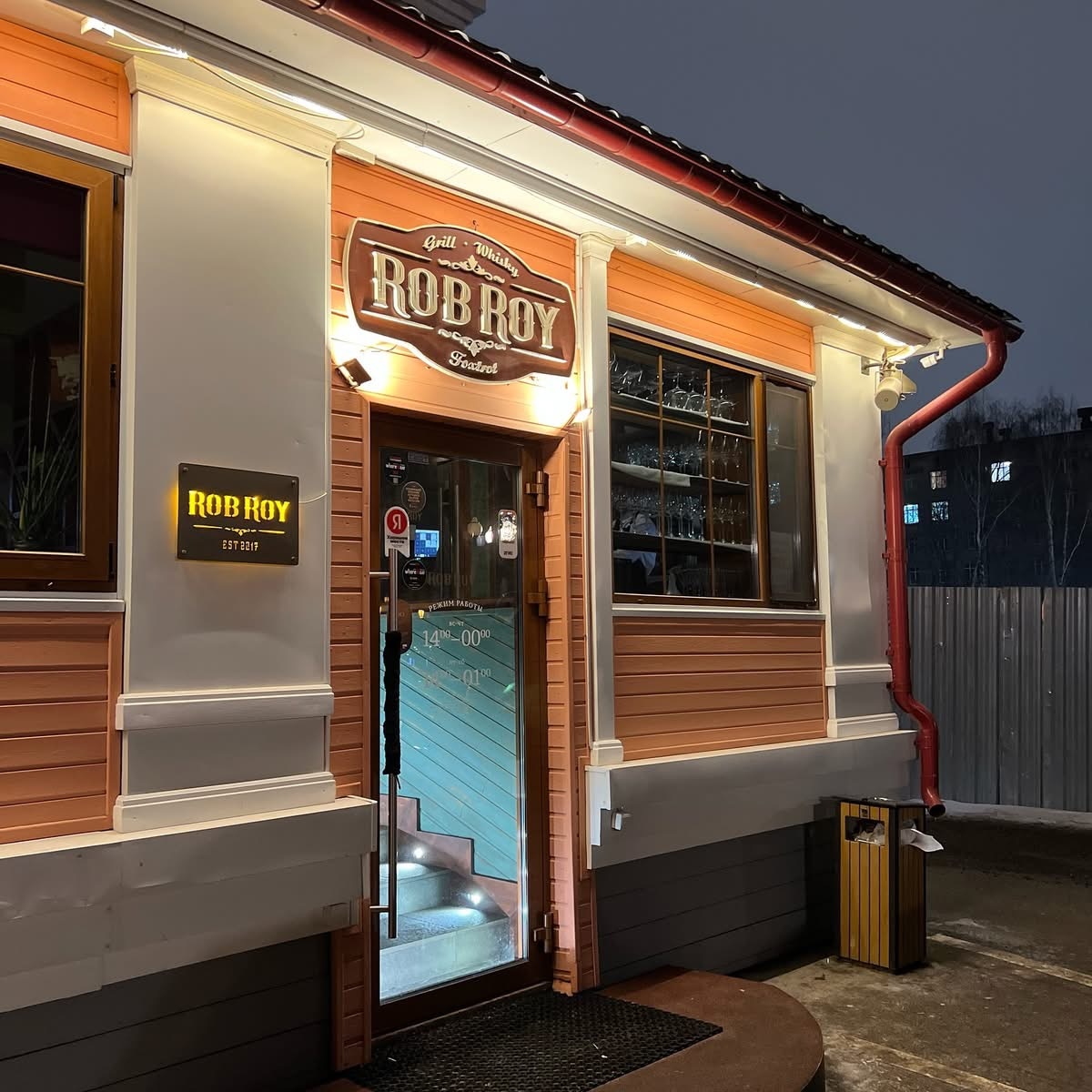 Волею случая посетил пермский гриль-бар Rob Roy. Говорят, лучший в городе. Заведение существует с 2017 года, о чём и написано на фасаде. Зал средних размеров. Есть и дополнительный на входе — как бы веранда. В будний день вечером нет свободных мест. Нашлось лишь одно место за баром. Скёрт-стейк по 1690 ₽ (300 г). Подаётся с соусом порто. К стейку на гарнир кукуруза-гриль с паприкой по 350 ₽ Сопровождением взял сухое Kafer Primitivo по 540 ₽ за бокал 125 мл. Скёрт-стейк относится к так называемым альтернативным стейкам. И для того, чтобы получить правильную текстуру, нужно проявить определённое мастерство. Прожарку мне порекомендовали medium well — «жир должен поджарится, это даст вкус». Стейк подают с большим количеством зелени. Это буквально пучок, перемотанный бечёвкой. Такой подачи ещё не встречал. В прожарку, к сожалению, не попали - сделали medium rare. Я обычные стейки предпочитаю с кровью, но альтернативе такая прожарка не подходит — мясо резиновое, жевать, не пережевать. Пред