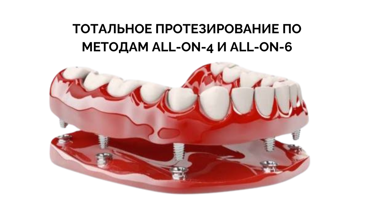 Тотальное протезирование по методам All-on-4 и All-on-6 – это инновационный способ имплантации зубов. Современные решения восстановления зубного ряда помогут при адентии, то есть при полном отсутствии зубов (на беззубой челюсти). В этой статье врачи «АМ Клиник» («Сделай зубы») рассказывают о том, что представляют собой данные технологии протезирования, и какими преимуществами они обладают. Инновационные методы имплантации All-on-4 и All-on-6 разработаны специально для полной реставрации зубного ряда как на верхней, так и на нижней челюсти, а значит – для возвращения эстетики и функциональности. Основная идея заключается в том, что зубной протез с коронками крепится на четыре (All-on-4 – «Все-на-4») либо на шесть (All-on-6 – «Все-на-6») имплантатов. Системы отличаются количеством имплантов: их число зависит от клинического случая. Процедура протезирования All-on-4 / All-on-6 включает следующие шаги: 1. Консультация и диагностика – осмотр и аппаратные исследования. Врач