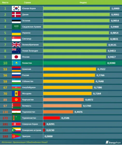 Казахстан входит в десятку лучших стран мира по индексу онлайн-услуг, который оценивает доступность и качество государственных услуг, предоставляемых через интернет, следует из данных Online Service Index.