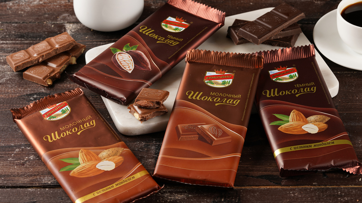 Шоколад — относительно новый продукт в кондитерской линейке «ЕРМОЛИНО». Он представлен в четырех вариантах, и каждый из них заслуживает внимания и вашей оценки. Но прежде пару слов о его составе. Шоколад ТМ «ЕРМОЛИНО» произведен по ГОСТу с использованием продуктов переработки какао-бобов: масла какао, какао тёртого и какао порошка. Содержание сухого остатка какао в шоколаде «ЕРМОЛИНО» — от 25% (у молочного шоколада с миндалем) до 62% (у темного шоколада). Это натуральный шоколад с понятным составом и традиционным вкусом. Каждая плитка — 100 граммов чистого удовольствия. В коллекции «ЕРМОЛИНО» каждый выберет шоколадку по вкусу и настроению. Выбирайте настоящий шоколад «ЕРМОЛИНО», чтобы радовать себя и близких в будни и праздники! Читайте также: