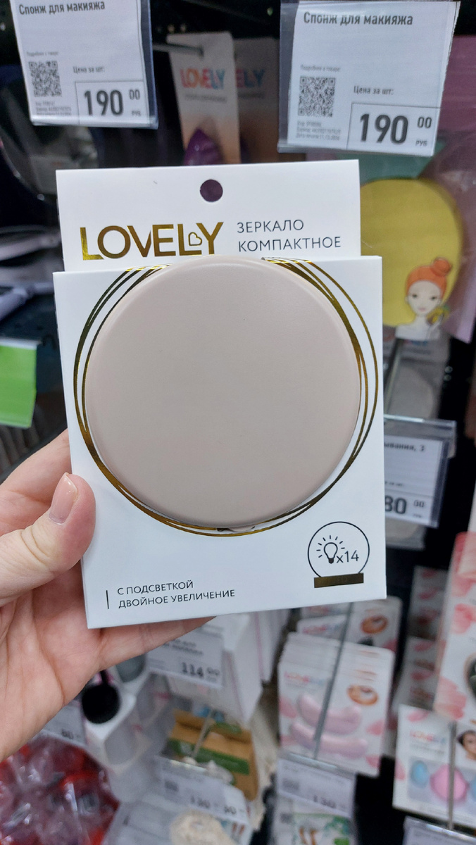 Компактное зеркало с подсветкой - новинка, 14 светодиодов, одна сторона 2-х кратное увеличение, вторая стандартная, срок службы 5 тысяч часов, открывается легко и сделано хорошо. Цена 230 рублей. Три цвета однотонные и все сдержанные, мне понравились.