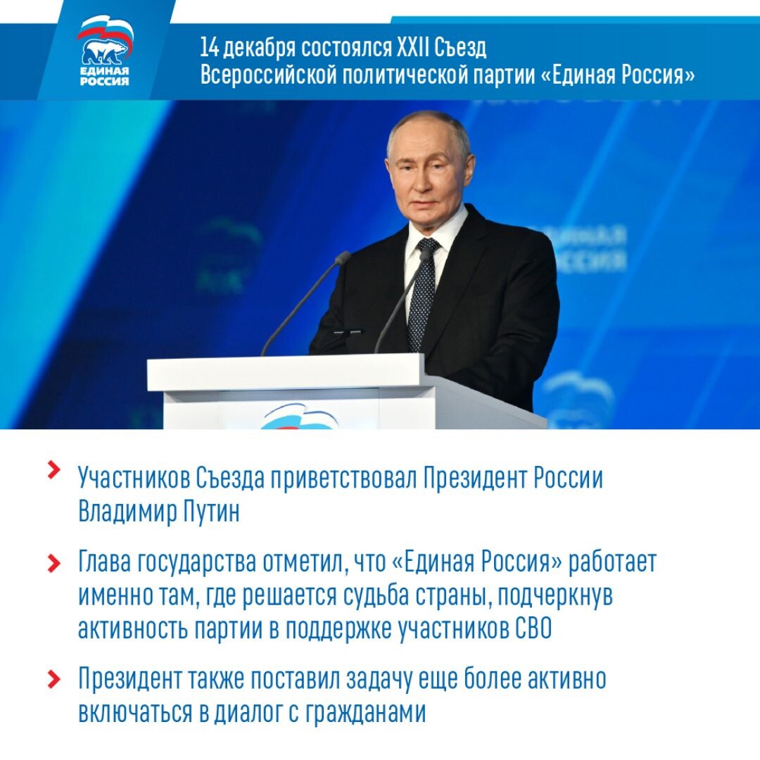 14 декабря прошел XXII Съезд «Единой России». Съезд стал важным политическим событием, которое определило стратегическое направление развития Партии на ближайшие годы. В рамках мероприятия были подведены итоги работы «Единой России» и намечены приоритетные задачи. Кроме того, были внесены важнейшие изменения в Народную программу Партии. #ЕдинаяРоссия #XXIIСъездЕР