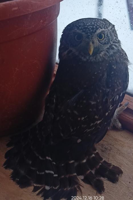 Сова спряталась от метели на веранде у себежанки