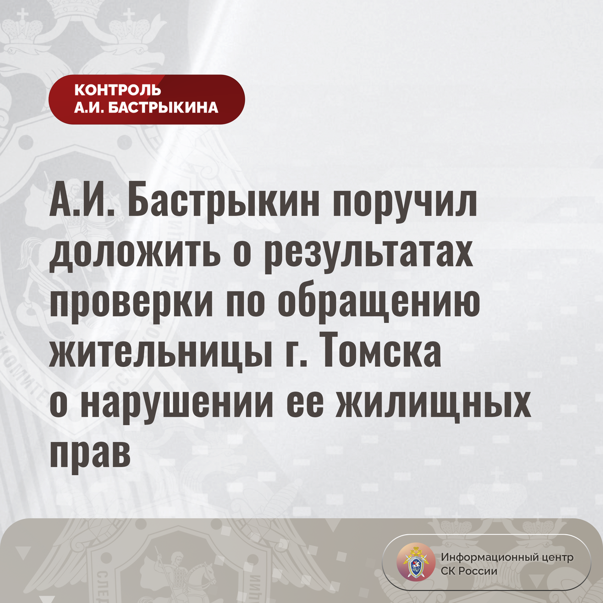 А.И. Бастрыкин поручил доложить о результатах проверки по обращению жительницы г. Томска о нарушении ее жилищных прав