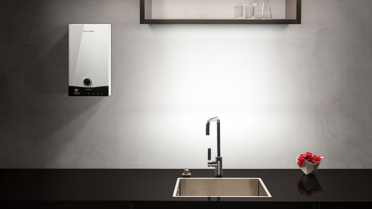 Если в ваших планах не только мытье рук, а полноценный ежедневный душ, и вы хотите, чтобы прибор обслуживал больше одной точки водоразбора – вам понадобится напорная модель. Например, проточный водонагреватель Multiflow от Royal Thermo – ведущего российского производителя широкого спектра климатической техники и лидера в сфере радиаторов отопления.
