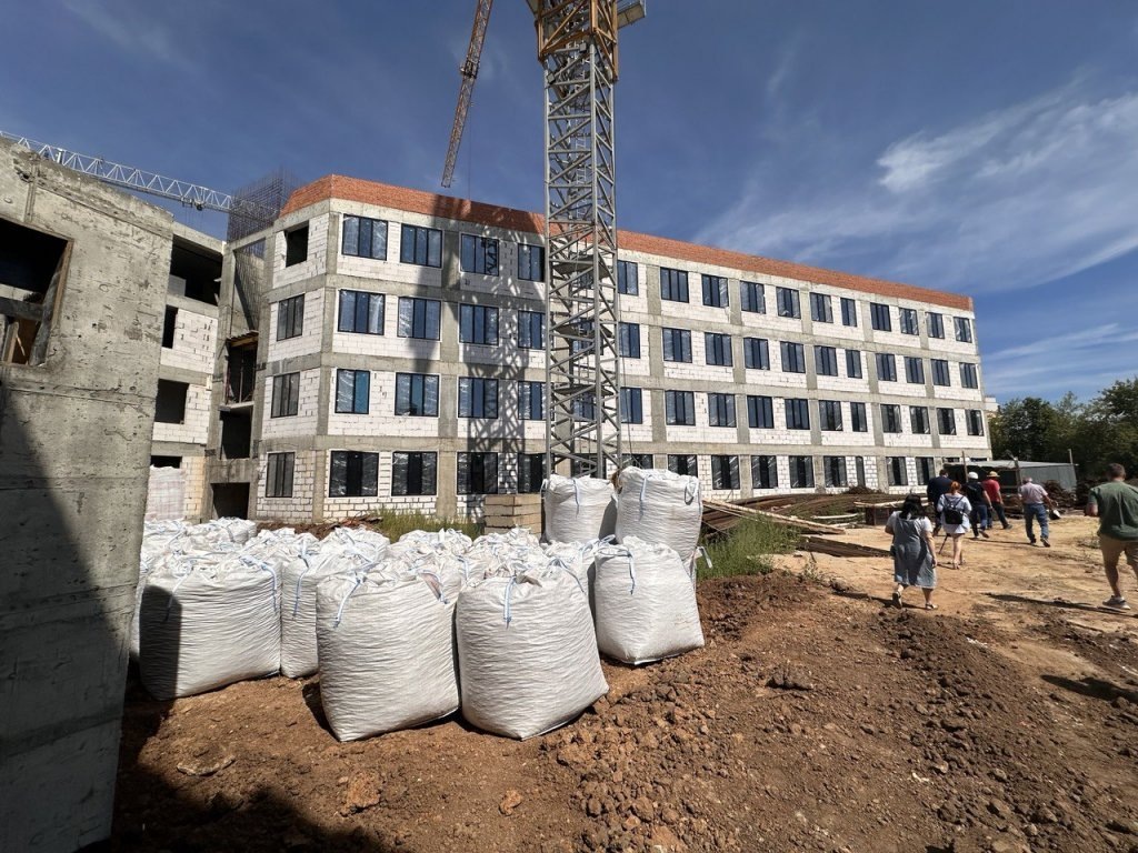 Минувшим летом школа была готова чуть более чем на треть: рабочие окончили монолитные работы и приступили к отделке внутренних помещений и благоустройству. Полностью завершить строительство компания «Стройцентр» должна до конца 2024 года.