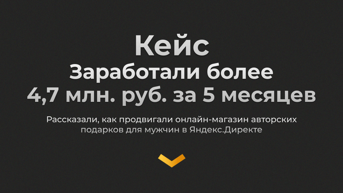 В июне к нам обратился интернет-магазин премиальных подарков для мужчин. Раньше заказчик самостоятельно настраивал рекламу в Яндекс.Директе. Стоимость продажи в 500 руб. его полностью устраивала. Только продаж по такой цене приходило очень мало, потому что в основном реклама работала на тех, кто уже был на сайте. То есть она догоняла, а не привлекала новых покупателей.