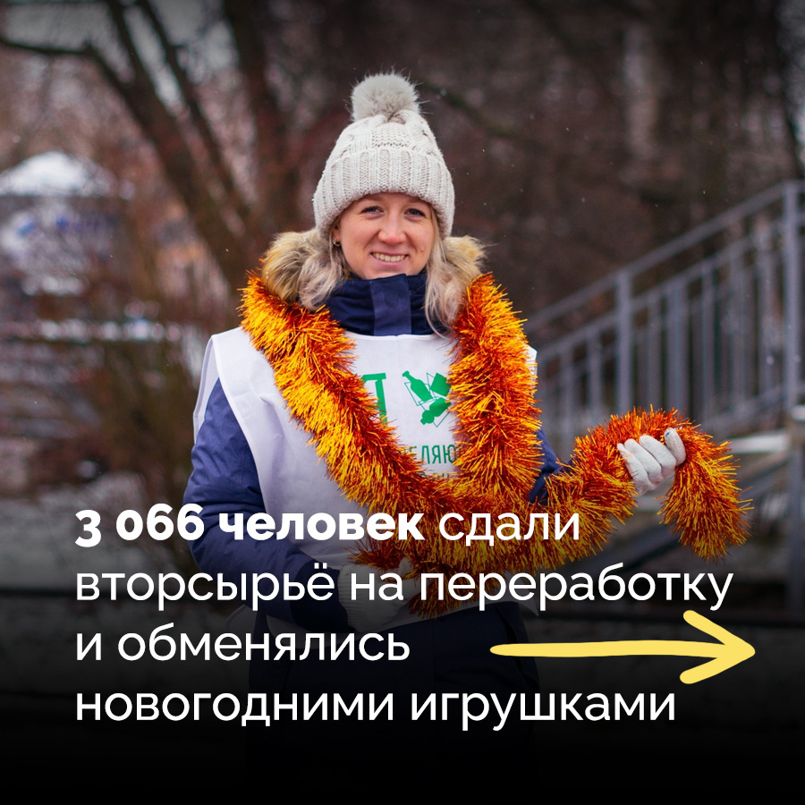 В декабре акция была особо праздничная, ведь мы не только собирали вторсырьё, но и менялись гирляндами, шариками, дедами морозами и даже маленькими ёлками. На акцию в декабре пришло больше трёх тысяч человек, и все вместе мы отправили на переработку 985 мешков вторсырья. Больше цифр — в галерее. 👉 Следующая акция по сбору вторсырья в Петербурге пройдёт 4 января. Чтобы не пропустить, подпишитесь на емейл-рассылку на нашем сайте — мы пришлём напоминание за несколько дней. Фото: Мария Селедчик
