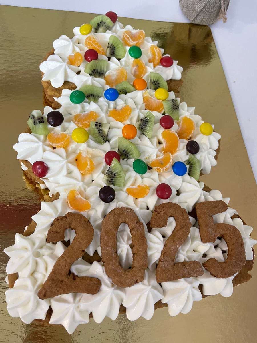 Давно хотела поделиться с вами этим рецептом, многие спрашивали. Рецепт простой, но тортик очень вкусный получается. По такому рецепту не только ёлочку можно готовить, любые другие фигуры - цифры, сердце, звезды. Кстати, торт на юбилей матери мы с дочкой готовили по этому же рецепту. Для коржей: 180 г сливочного масла 100 г мёда, 4 яйца, 200 г сахара, 1 ч. л. соды, 500-600 г муки Для крема: Сливки 33% - 500 г, Сыр маскарпоне 250 г Сахарная пудра -100-150 г Приготовление: Ставим кастрюлю на огонь, в неё кидаем сливочное масло и мёд и перемешиваем, пока масло не растает. До кипения не доводим. Выключаем огонь. В отдельной таре взбиваем яйца с сахаром, эту смесь добавляем в медовую массу. Опять включаем огонь и постоянно мешая, доводим до кипения и сразу же добавляем 1 ч. ложку соды. Масса начнет пениться и подниматься. Помешивая, держим примерно 1 минуту на огне и выключаем. Ждем когда немного остынет. В остывшую массу добавляем понемногу муку и замешиваем тесто. И оставляем тес