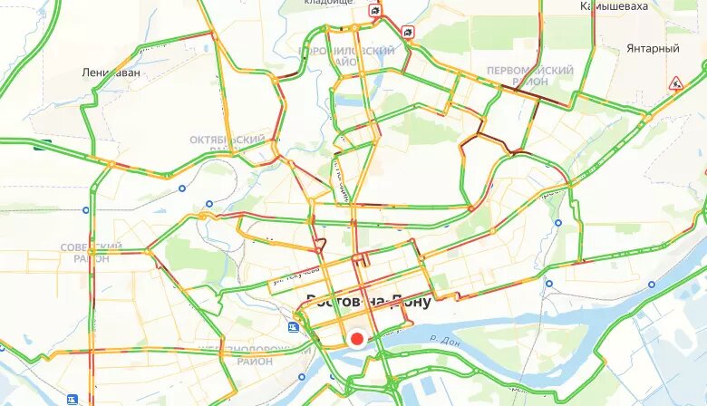 Напряженная ситуация сложилась на главных дорожных артериях города. Машины практически не двигаются на проспекте Буденовском, Ворошиловском, Соколова, на улице Большой Садовой, Красноармейской, Текучева, Богатяновском спуске.