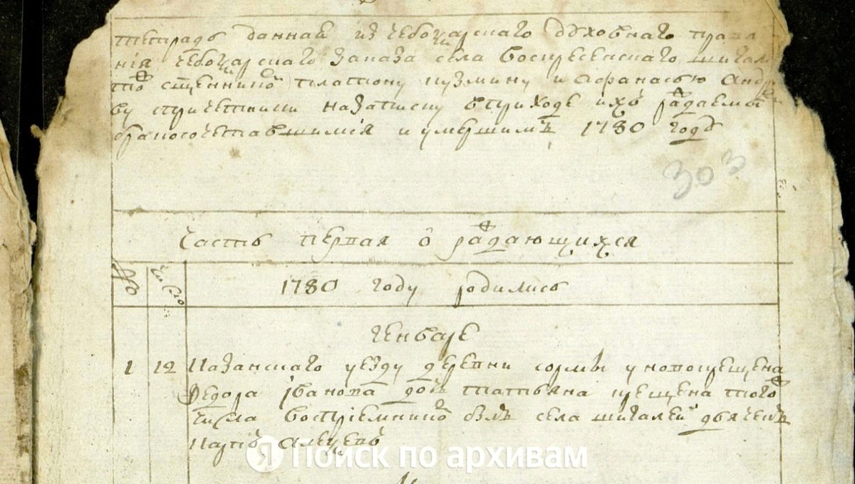 Итого родилось в прошлом 1780 году мужеского 6, женского 5, обоего пола 11 человек..