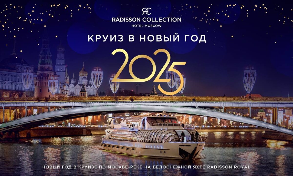 Radisson Collection Hotel, Moscow приглашает Вас вместе отпраздновать Новый год на борту белоснежной яхты. В ночь с 31 декабря на 1 января мы отправимся в незабываемый круиз по Москве-реке – гостей ждет высококлассный сервис, зажигательная развлекательная программа, розыгрыш призов, безлимитный бар, угощения от победителя премии Russian Hospitality Awards в номинации «Лучший шеф-повар отеля» Александра Тинякова и, конечно же, красивейшие заснеженные виды Москвы. Подробности на сайте http://radisson2025.ru/