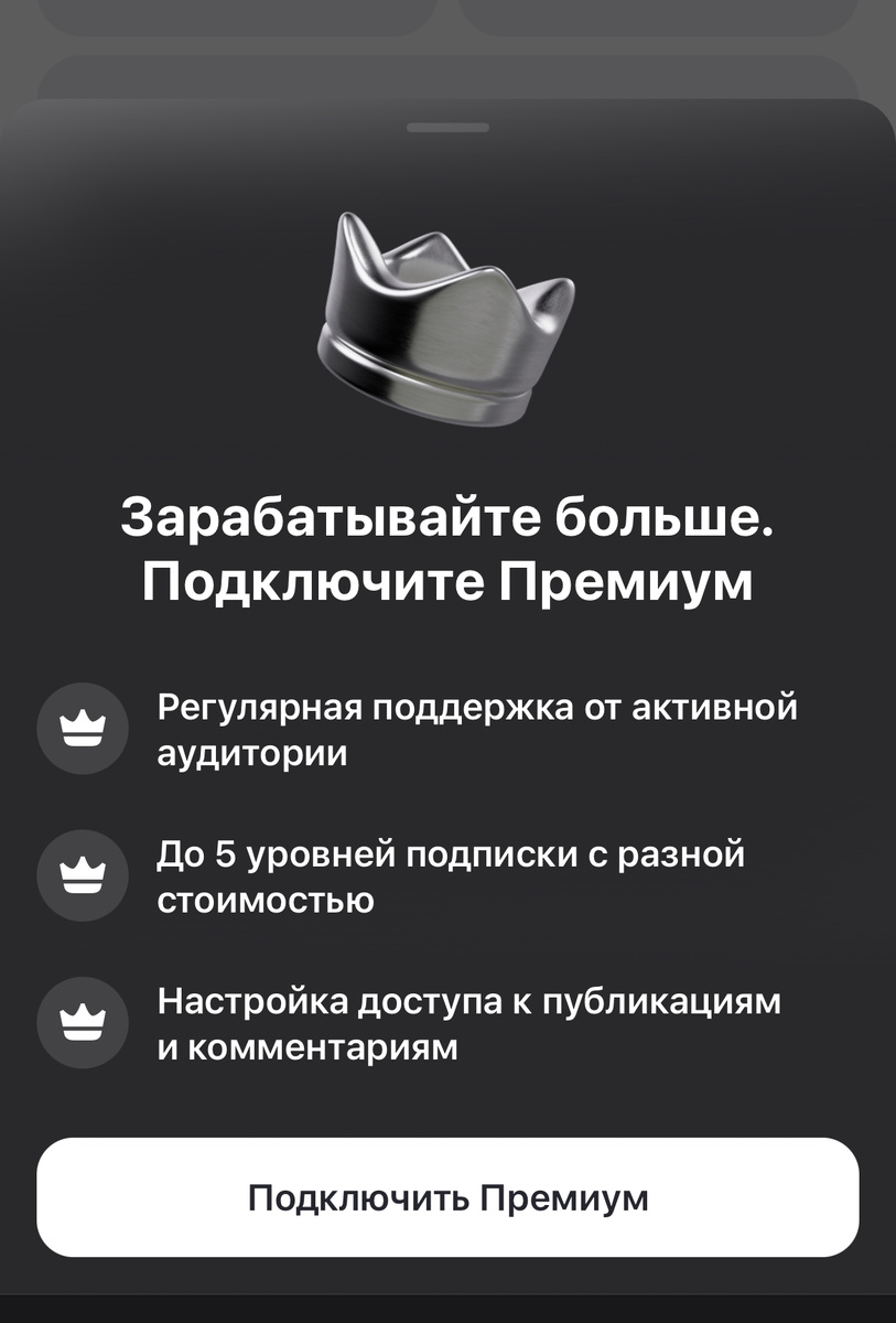 Вот и у меня появился кнопка подключения Премиум. Можно размещать платные публикации, собирать деньги с читателей и зарабатывать деньги. Там в описании функции так классно всё подсчитано, говорят, что можно 180 000 рублей в месяц поднять на платных подписках. Я не пробовала, подтвердить не могу. Что размещать за деньги? Можно фотографии, например, интересные. Или видео. За что там народ обычно отдает деньги? Про фото и видео - это сарказм, конечно был. Пока я эту возможность использовать не буду. Как-то неловко брать деньги за тот бред, что я здесь размещаю. Это же развлекательный контент, чтобы почитать утром за завтраком или не за завтраком. Все в разных местах читают по утрам. С другой стороны, хорошо, что такая возможность есть. Иметь выбор - это всегда здорово. Я же не знаю, что будет в будущем, а вдруг я однажды проснусь и как начну создавать супер-ценный контент, за который аудитория будет готова платить. Так что пусть кнопочка будет в личном кабинете. Хлеба она не проси
