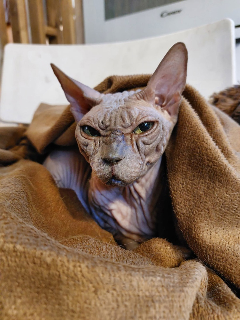 Многие скажут, что на свете нет гармонии, если только в музыке, нет идеала и нет совершенства. Я на это улыбнусь и докажу вам обратное. Знакомьтесь, эта взрослая, умнейшая, красивейшая и элегантная дама вмещает а себя все то, во что вы не верите. Эту даму зовут Лара. Лара канадский сфинкс, она кошка. Сплошные грация и изящество, не дают отвести взгляд от нее. Природа подарила Ларе редкий окрас, она темно коричневая, иногда темно серая, в зависимости от освещения. Лара философ, мудрость и любовь. Зеленые огромные глаза ставят вам диагноз за 1 минуту. Ее сканер никогда не подводит. Люди, которые знают язык кошек, а таких среди нас очень много, могут рассказать и поделиться и услышать единственно верный совет и ответ. Лара возрастная девочка. Ей 10 лет. Попав в очень неприятную ситуацию, она отнеслась к этому с должной мудростью и философией. Слава Богу, со здоровьем все хорошо, думает она. И это абсолютная правда.