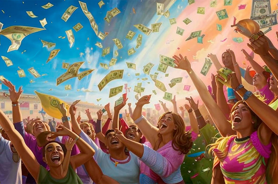 Это классическая пирамида. МММ, но в масштабах мира. Некие люди создали сумасшедшую, гигантскую денежную массу из воздуха, причем заемную. А население стран, у которых по факту заняли, банально подкупили высокими зарплатами и просто разными раздачами этих денег в виде дотаций, выплат и пособий. А потом их убедили, что они стали жить лучше — не потому что стали крупными должниками, а потому что демократия и либеральные ценности. Это как кто-то взял на мой паспорт кредит в десять лямов, а мне ежемесячно отстегивает по сотке продолжая брать кредиты и беря на себя всю юридическую и финансовую волокиту. Но итог один, должник останется наедине со своими долгами.