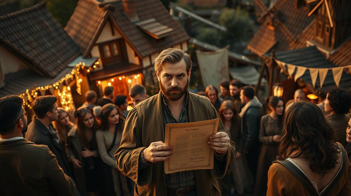 Но не всем это нравилось. Некто Пётр, местный скептик, втихаря попросил библиотекаря Аркадия проверить документ. Тот, прогулявшись вечером, признался: «Я сомневаюсь, что документ настоящий. Бумага и письмо странные. Может, эта сваха нас всех обманывает?»