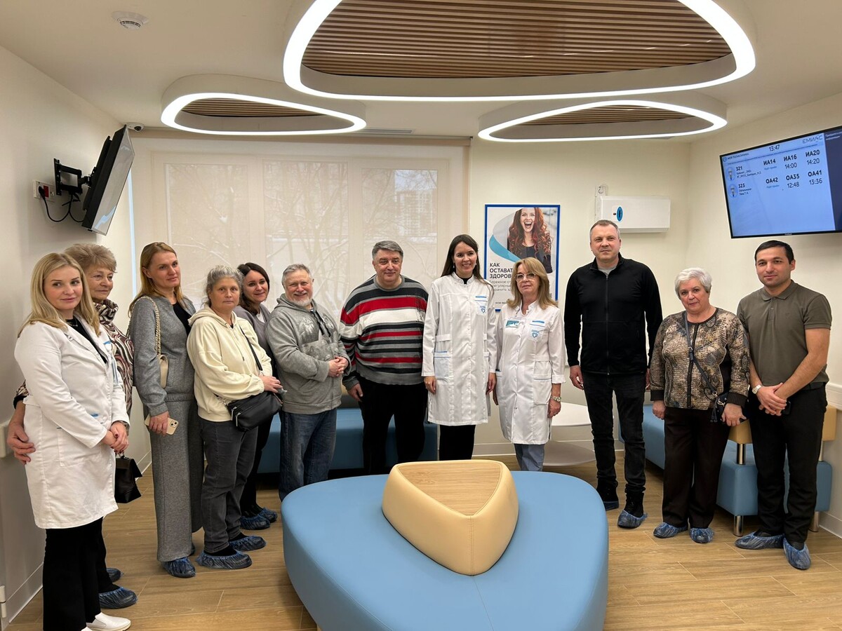 Сегодня наш филиал № 4, возобновивший работу после капитального ремонта по новому московскому стандарту поликлиник, посетили депутат Государственной Думы Евгений Георгиевич Попов, глава Управы Эльдар Заурбейгович Нахаев, заместитель главы управы Юлия Васильевна Ильвичева, начальник отдела управы Екатерина Александровна Корнилова, муниципальный депутат Александр Геннадиевич Бутенко, председатель Совета ветеранов Юлия Федоровна Кирий, заместитель председателя Совета ветеранов Валентина Филипповна Мошковская, заместитель Секретаря местного отделения Партии «Единая Россия» Карен Кароевич Осипян, председатель Общественного совета КДЦ №4 Дмитрий Юрьевич Прохоров, председатель общества многодетных семей Ольга Валерьевна Садикова.