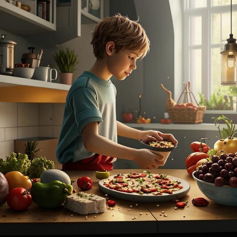Привет! Я хочу рассказать о том, какие классные штуки можно сделать всего лишь из нескольких продуктов. У меня было одно яйцо, кусок сыра, батон и немножко колбаски. Сначала я думал, что ничего интересного не получится, но потом начал экспериментировать! 1. Омлет с сыром и колбасой Это был мой первый опыт. Я разбил яйцо в чашку, добавил туда чуть-чуть соли и перемешал вилочкой. Потом порезал колбасу маленькими квадратиками и бросил их в чашку. Мама сказала, что надо разогреть сковородку, а потом положить туда масло. Когда оно стало жидким, я вылил всё из чашки на сковородку. Через пару минут я насыпал сверху натёртый сыр и закрыл крышку. Это было круто – когда крышка открылась, сыр уже растаял и выглядел очень аппетитно! Я съел этот омлет прямо со сковородки, потому что не хотел ждать, пока мама найдёт тарелку. 2. Тосты с сыром и колбасой Тут всё просто. Я взял батон и отрезал два кусочка. Мама показала мне, как включить плиту, и я поставил сковородку без масла. Когда она нагрелась, я