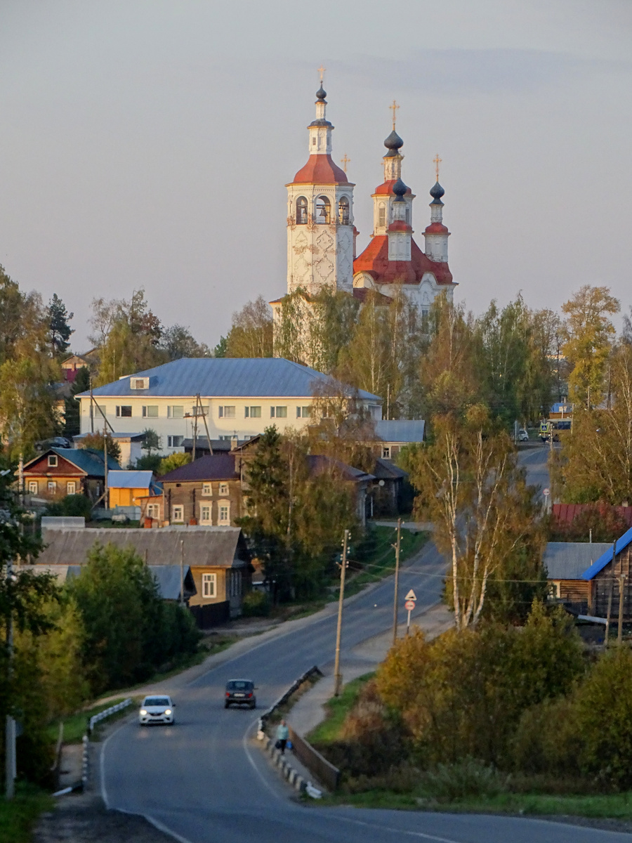 Я остановился у многоэтажного храма - визитной карточки Тотьмы. Да да, именно многоэтажного! Здесь, на севере это нормально. Кто-то их называет храмы-корабли, но они действительно поражают своими масштабами, особенно если находятся в таких крошечных городах, как Тотьма.
