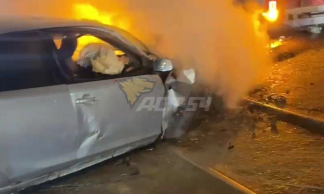Легковушка столкнулась с тягачом на Петухова в Новосибирске и загорелась