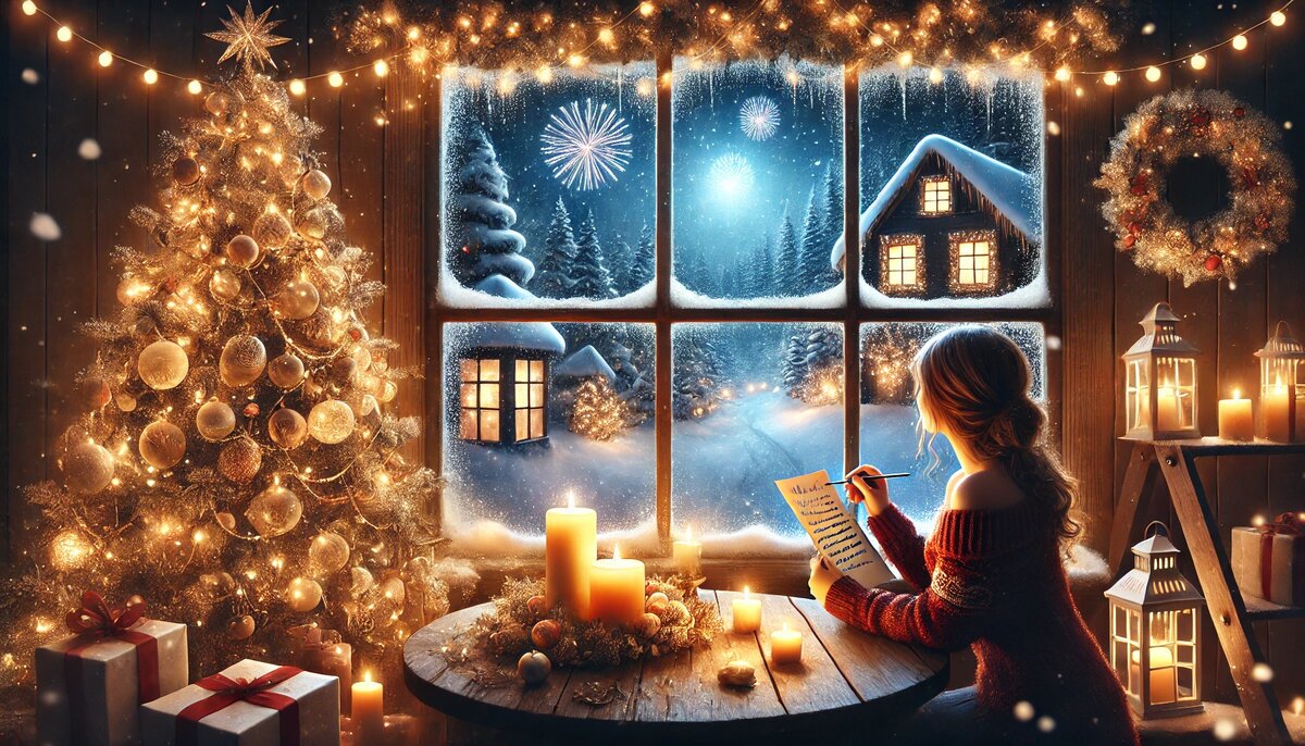 «Куранты пробили двенадцать, я так боялась не успеть загадать желание, пока Макс разливал шампанское, но он успел наполнить всем бокалы, не забыв налить мне лимонад. И я быстро написала на листочке желание: «Ещё раз встретить здесь Новый год!» Я была уверена, что мы в таком же составе соберёмся на следующий год именно здесь.»