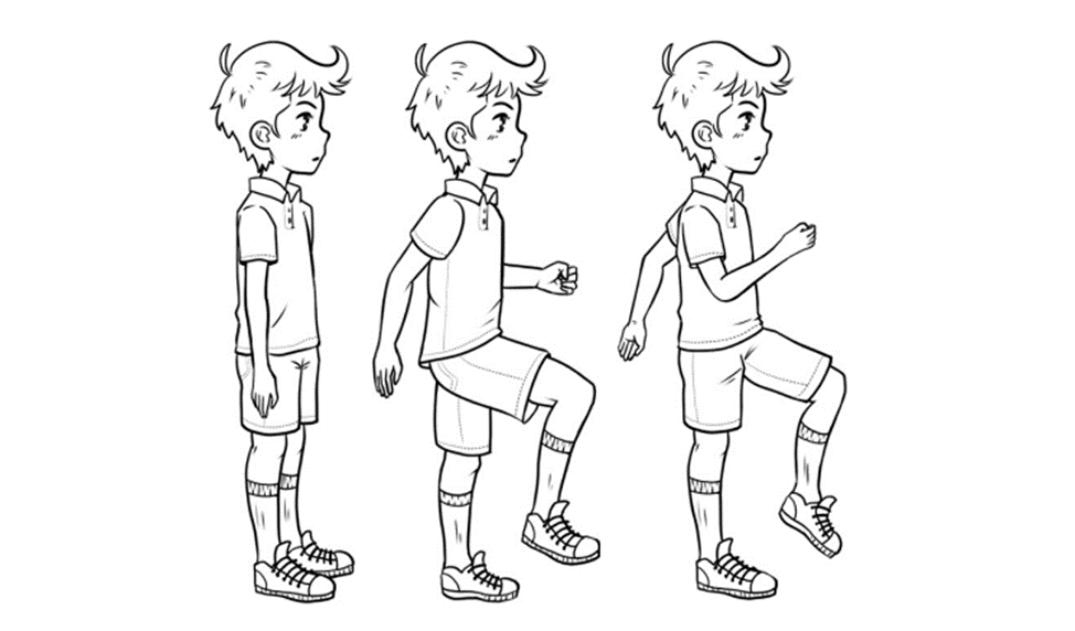 Я собрала игры и задания, которые эффективно применяла на практике для занятий с детьми младшего школьного возраста, у которых были разнообразные проблемы с овладением школьной программой. Точность и ловкость движений является базой для красивого, ровного почерка, хорошей концентрации внимания, правильной осанки во время выполнения уроков. «Ритмичный марш с хлопками» Точное ритмичное марширование — это основа способности плавно переключаться с одного движения на другое. Для начала покажите ребенку, как нужно маршировать. Одна нога сгибается в колене и поднимается вверх, другая устойчиво стоит, тело при этом не раскачивается и не заваливается. Затем нога опускается и тут же поднимается другая. Руки не болтаются, а совершают противоход движениям ног. Шагаем несколько маршевых шагов и наблюдаем, как эти шаги выполняет ребенок. Если все получается хорошо, ребенок не теряет равновесие, удерживает ритм маршевого шага, то можно переходить к следующему варианту упражнения. Если же ребенок пере