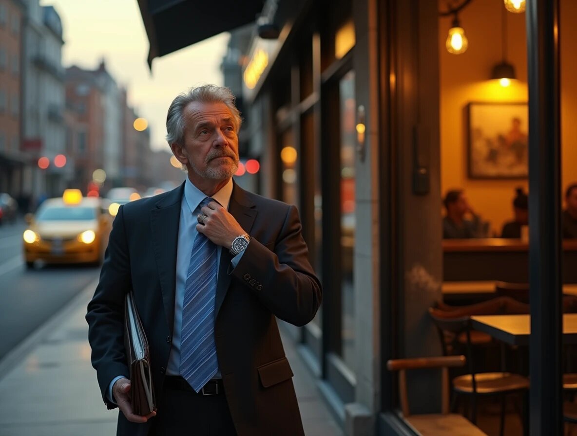 Без пяти восемь у кафе остановилось такси. Виктор вышел, поправляя галстук — тот самый, синий в полоску, который я подарила ему на прошлый день рождения. Он выглядел взволнованным, несколько раз проверил время на часах. В руках — кожаная папка для документов. Деловая встреча? Я почти поверила в это, пока не увидела, как тщательно он пригладил волосы, глядя в витрину кафе.